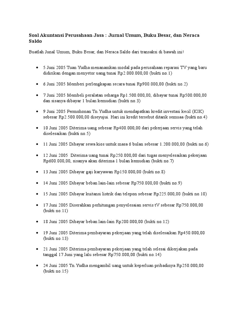 Soal Akuntansi Perusahaan Jasa Jurnal Umum Buku Besar Dan Neraca
